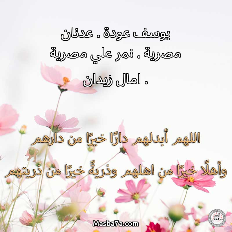 اللهم ارحم ( يوسف عودة . عدنان مصرية . نمر علي مصرية . امال زيدان ) وانس وحشتهم واجمعنا بهم في جنتك ، اللهم ارحمهم بقدر شوقنا لهم اللهم ارحمهم واغفر لهم.