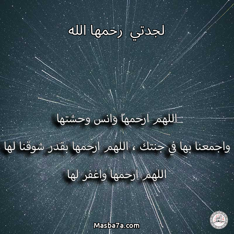 اللهم ارحم ( لجدتي رحمها الله ) وانس وحشتها واجمعنا بها في جنتك ، اللهم ارحمها بقدر شوقنا لها اللهم ارحمها واغفر لها .