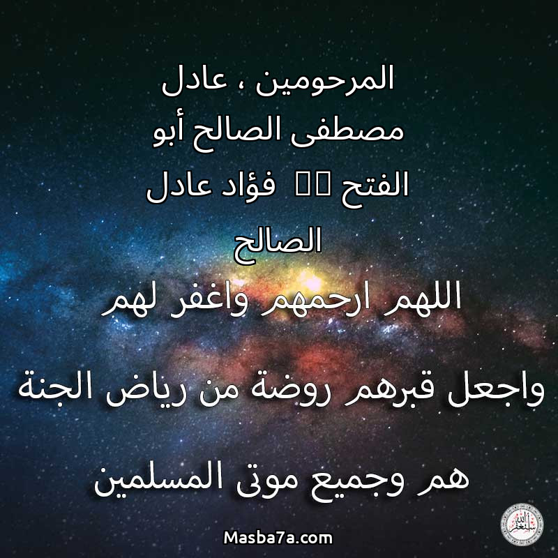 اللهم ارحم ( المرحومين ، عادل مصطفى الصالح أبو الفتح & فؤاد عادل الصالح ) وانس وحشتهم واجمعنا بهم في جنتك ، اللهم ارحمهم بقدر شوقنا لهم اللهم ارحمهم واغفر لهم.