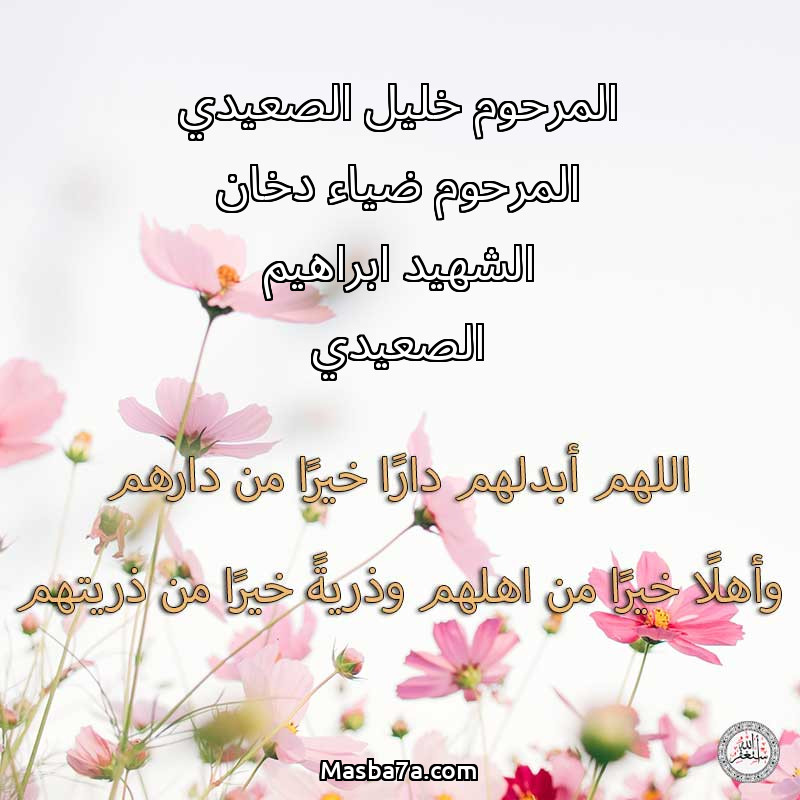 اللهم ارحم ( المرحوم خليل الصعيدي المرحوم ضياء دخان الشهيد ابراهيم الصعيدي ) وانس وحشتهم واجمعنا بهم في جنتك ، اللهم ارحمهم بقدر شوقنا لهم اللهم ارحمهم واغفر لهم.