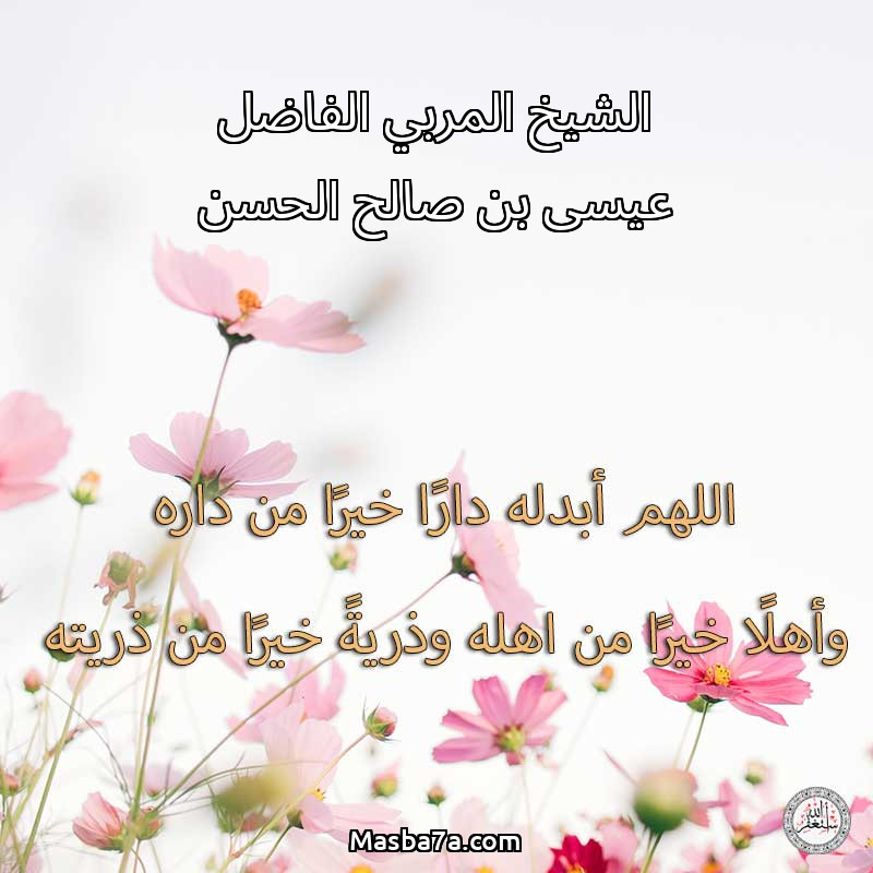 اللهم ارحم ( الشيخ المربي الفاضل عيسى بن صالح الحسن ) وانس وحشته واجمعنا به في جنتك ، اللهم ارحمه بقدر شوقنا له اللهم ارحمه واغفر له .