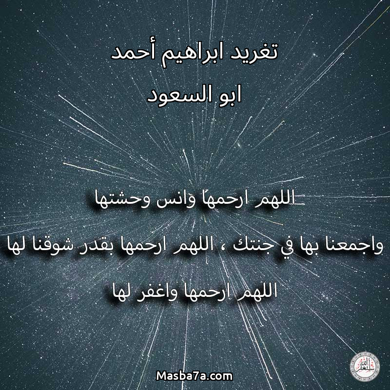 اللهم ارحم ( تغريد ابراهيم أحمد ابو السعود ) وانس وحشتها واجمعنا بها في جنتك ، اللهم ارحمها بقدر شوقنا لها اللهم ارحمها واغفر لها .