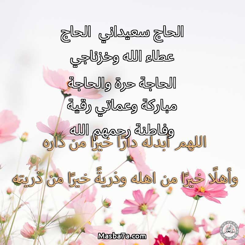 دعاء عن روح المرحوم الحاج سعيداني الحاج عطاء الله وخزناجي الحاجة حرة والحاجة مباركة وعماتي رقية وفاطنة رحمهم الله
