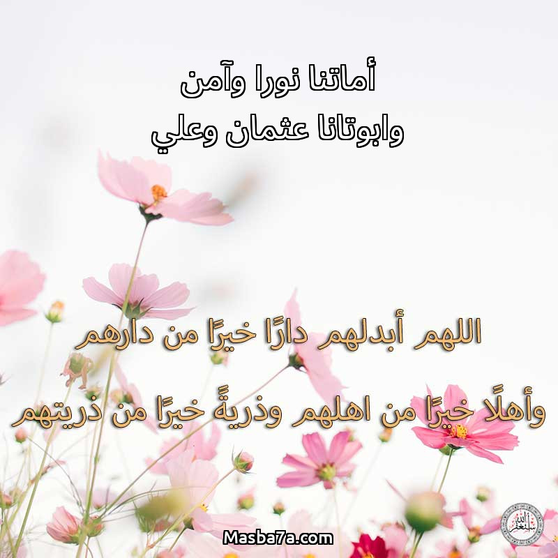 اللهم ارحم ( أماتنا نورا وآمن وابوتانا عثمان وعلي ) وانس وحشتهم واجمعنا بهم في جنتك ، اللهم ارحمهم بقدر شوقنا لهم اللهم ارحمهم واغفر لهم.