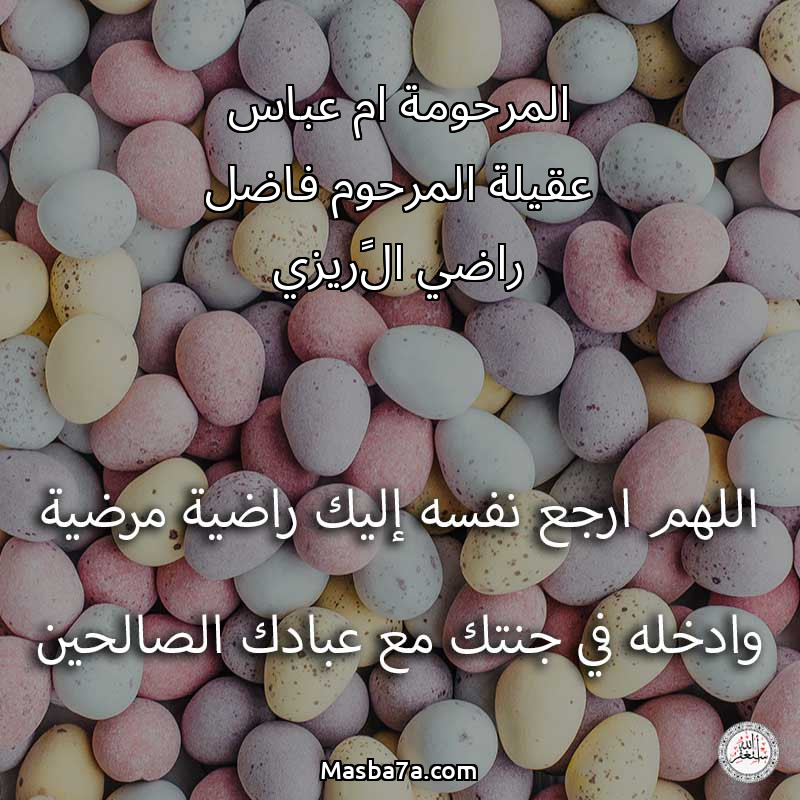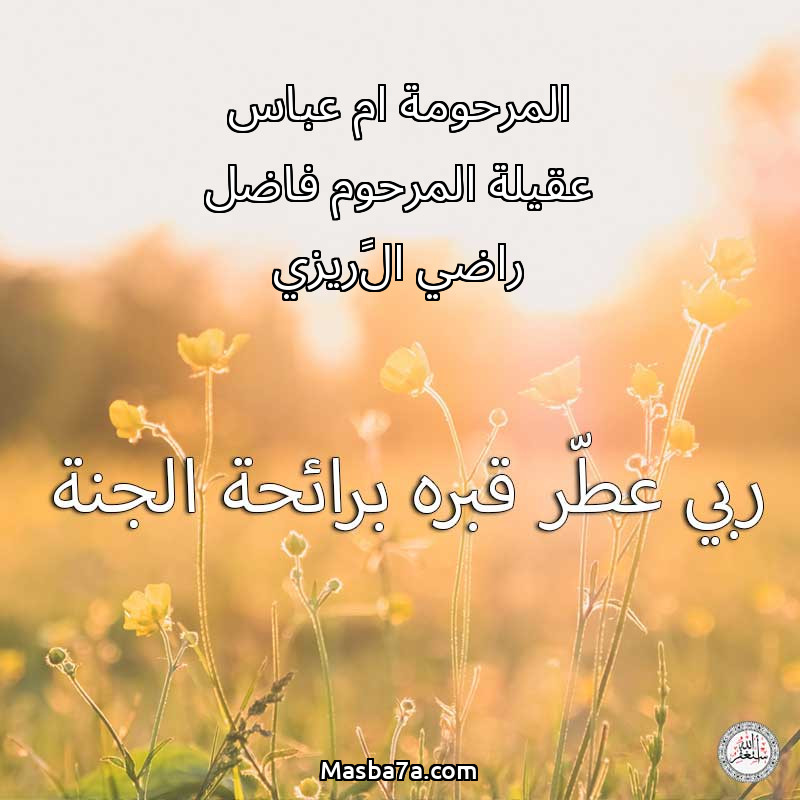 اللهم ارحم ( المرحومة ام عباس عقيلة المرحوم فاضل راضي الگريزي ) وانس وحشته واجمعنا به في جنتك ، اللهم ارحمه بقدر شوقنا له اللهم ارحمه واغفر له .