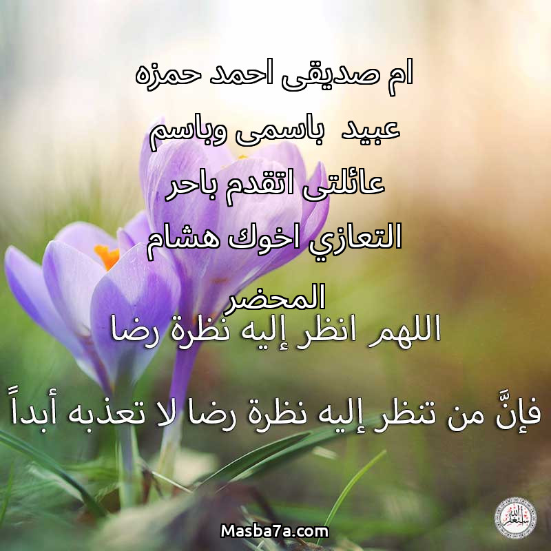 دعاء عن روح المرحوم ام صديقى احمد حمزه عبيد باسمى وباسم عائلتى اتقدم باحر التعازي اخوك هشام المحضر