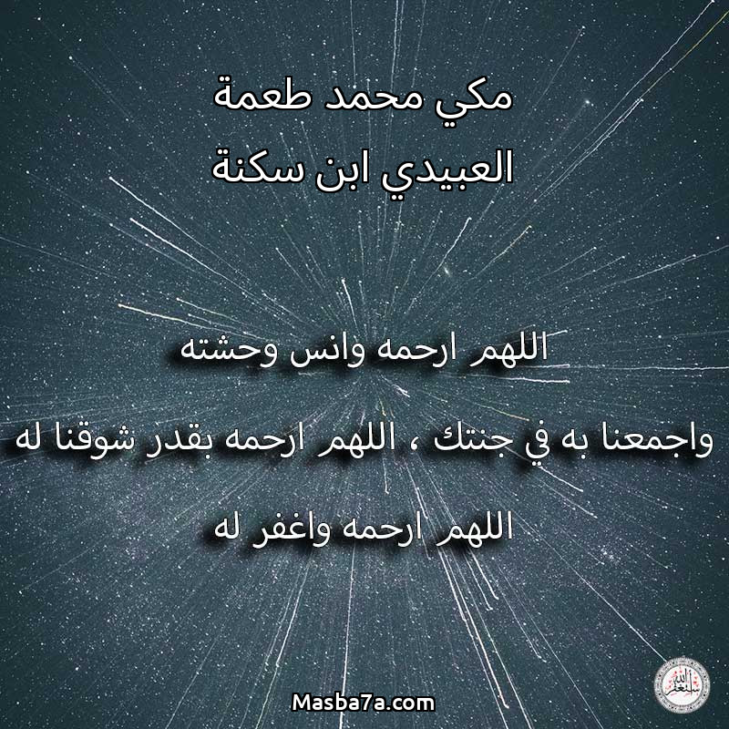 اللهم ارحم ( مكي محمد طعمة العبيدي ابن سكنة ) وانس وحشته واجمعنا به في جنتك ، اللهم ارحمه بقدر شوقنا له اللهم ارحمه واغفر له .