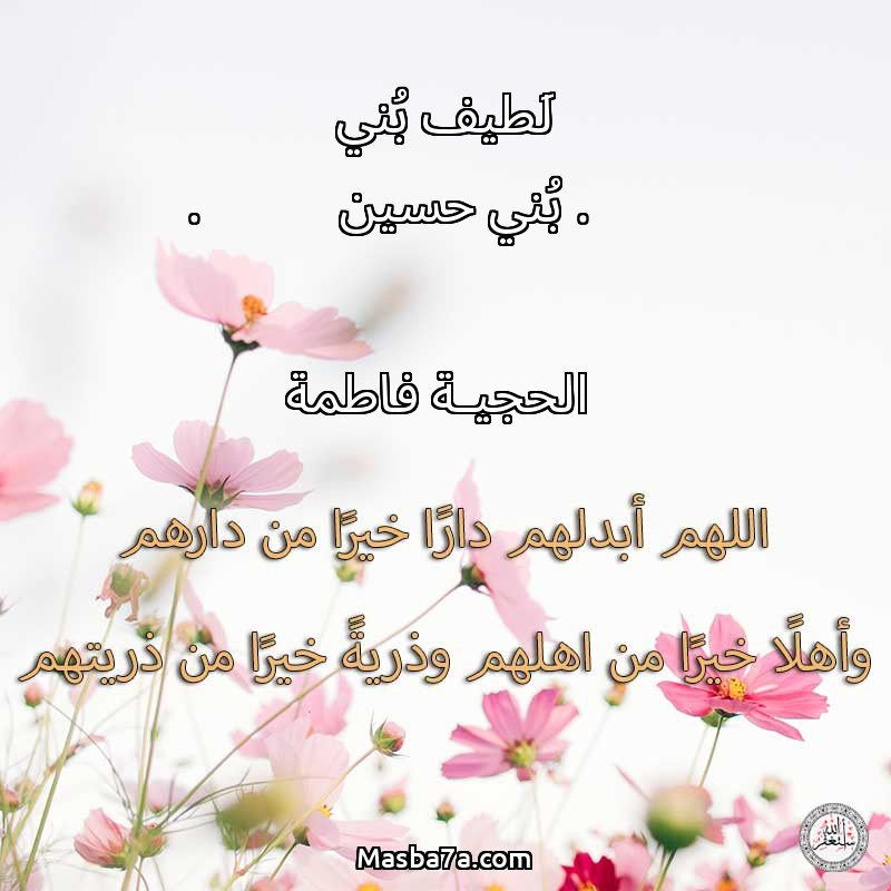 اللهم ارحم ( لَطيف بُني |. بُني حسين . | الحجيـة فاطمة ) وانس وحشتهم واجمعنا بهم في جنتك ، اللهم ارحمهم بقدر شوقنا لهم اللهم ارحمهم واغفر لهم.