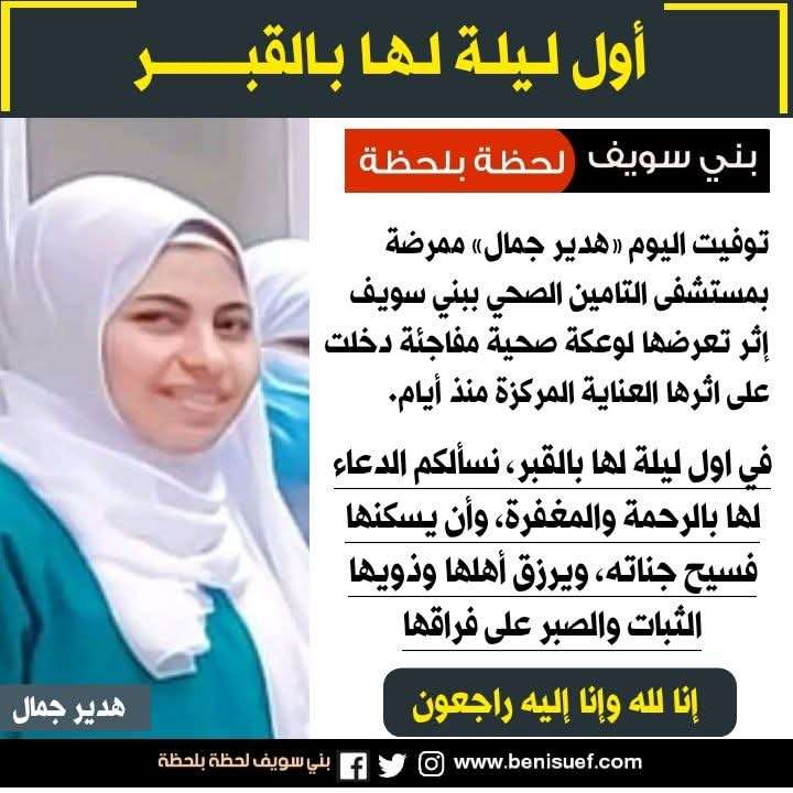 اللهم ارحم ( هدير جمال ) وانس وحشتها واجمعنا بها في جنتك ، اللهم ارحمها بقدر شوقنا لها اللهم ارحمها واغفر لها .