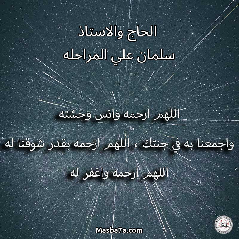 اللهم ارحم ( الحاج والاستاذ سلمان علي المراحله ) وانس وحشته واجمعنا به في جنتك ، اللهم ارحمه بقدر شوقنا له اللهم ارحمه واغفر له .