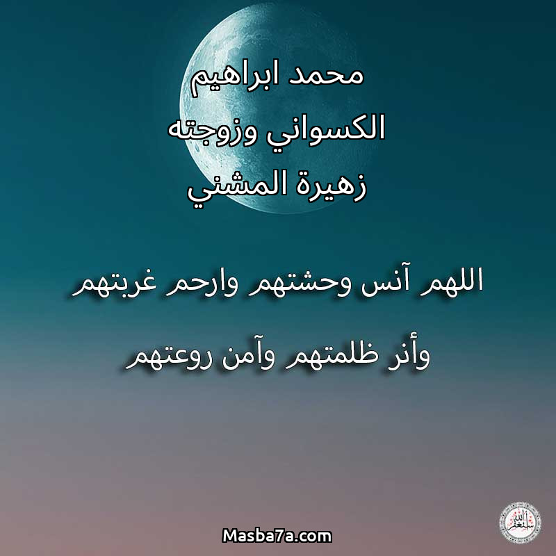 اللهم ارحم ( محمد ابراهيم الكسواني وزوجته زهيرة المشني ) وانس وحشتهم واجمعنا بهم في جنتك ، اللهم ارحمهم بقدر شوقنا لهم اللهم ارحمهم واغفر لهم.