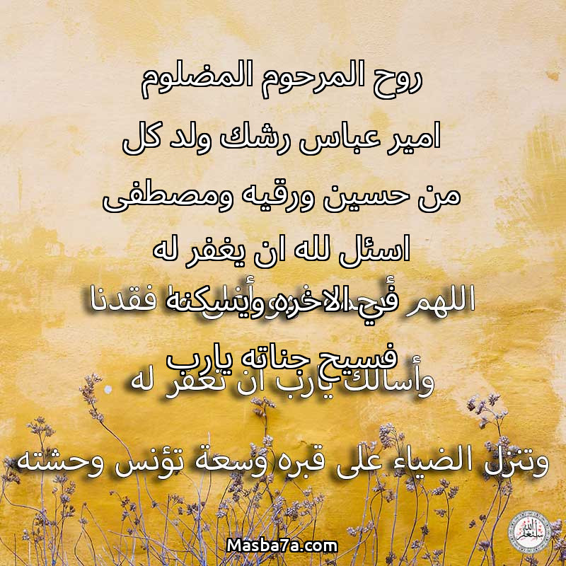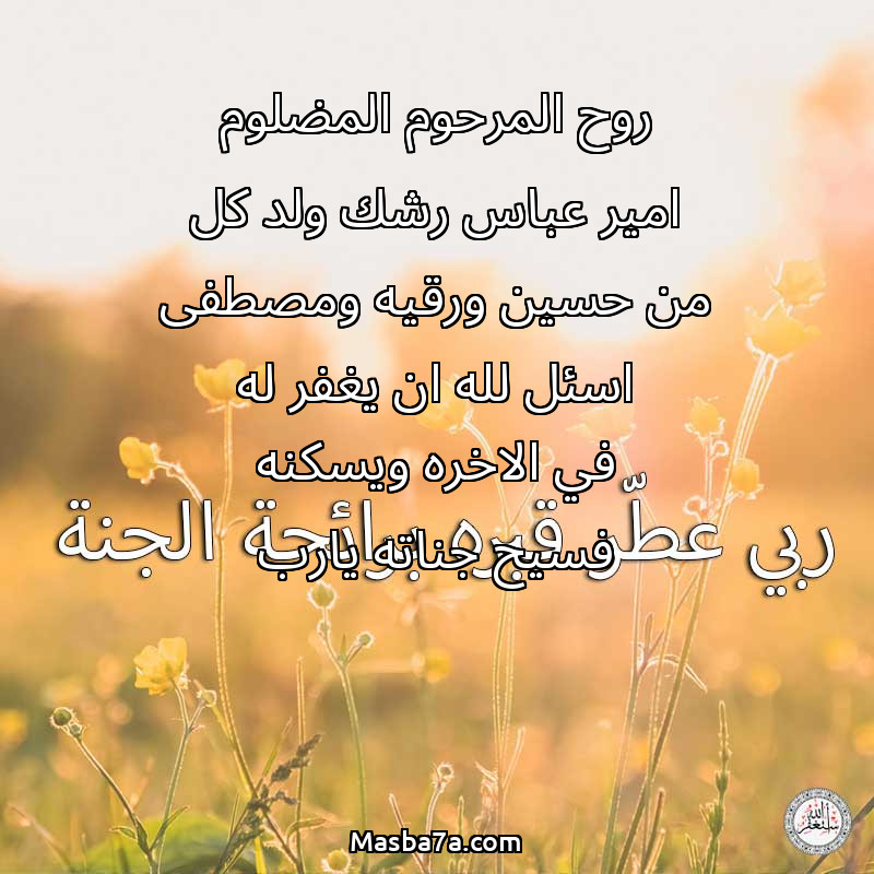 دعاء عن روح المرحوم روح المرحوم المضلوم امير عباس رشك ولد كل من حسين ورقيه ومصطفى اسئل لله ان يغفر له في الاخره ويسكنه فسيح جناته يارب