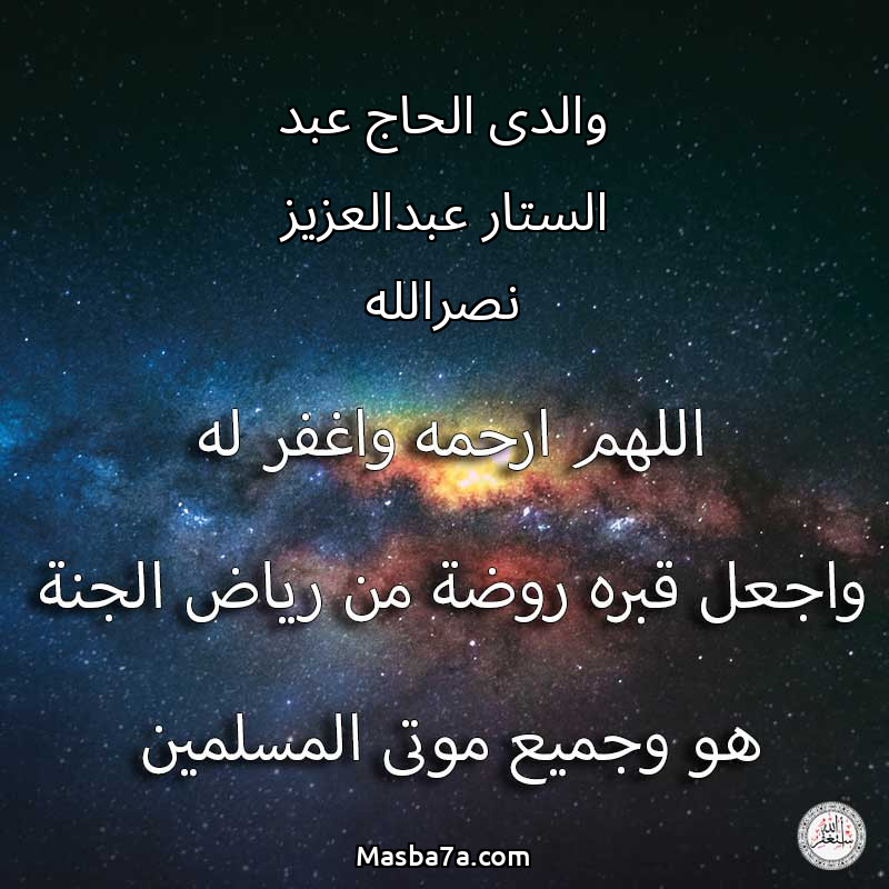 اللهم ارحم ( والدى الحاج عبد الستار عبدالعزيز نصرالله ) وانس وحشته واجمعنا به في جنتك ، اللهم ارحمه بقدر شوقنا له اللهم ارحمه واغفر له .