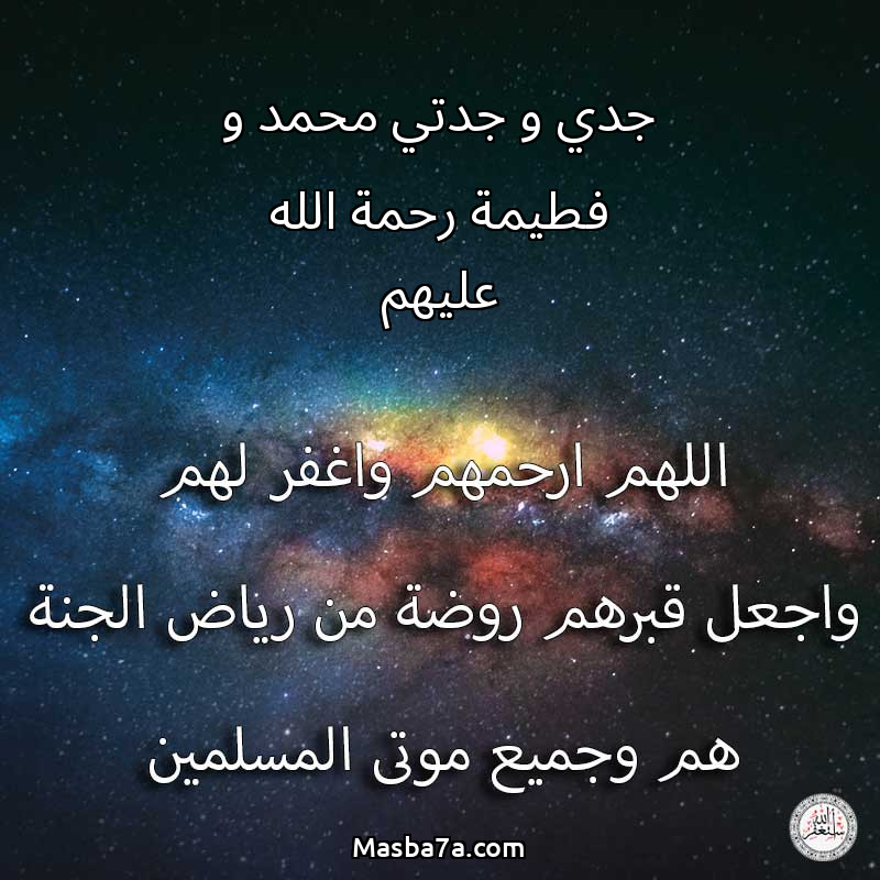 اللهم ارحم ( جدي و جدتي محمد و فطيمة رحمة الله عليهم ) وانس وحشتهم واجمعنا بهم في جنتك ، اللهم ارحمهم بقدر شوقنا لهم اللهم ارحمهم واغفر لهم.