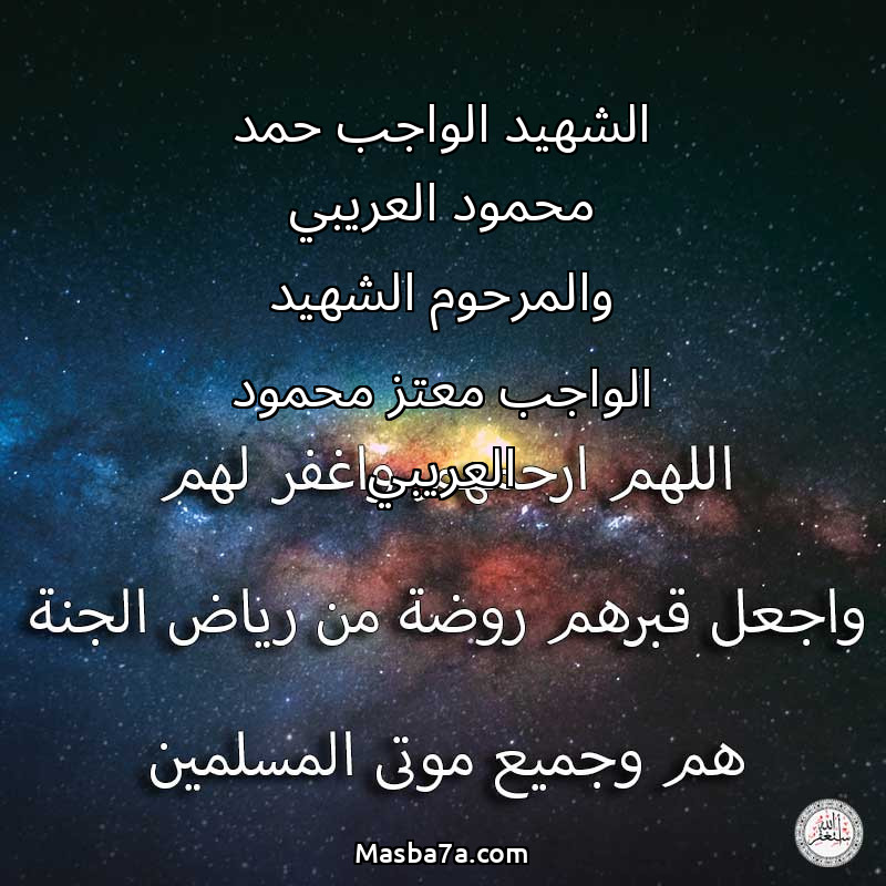اللهم ارحم ( الشهيد الواجب حمد محمود العريبي والمرحوم الشهيد الواجب معتز محمود العريبي ) وانس وحشتهم واجمعنا بهم في جنتك ، اللهم ارحمهم بقدر شوقنا لهم اللهم ارحمهم واغفر لهم.