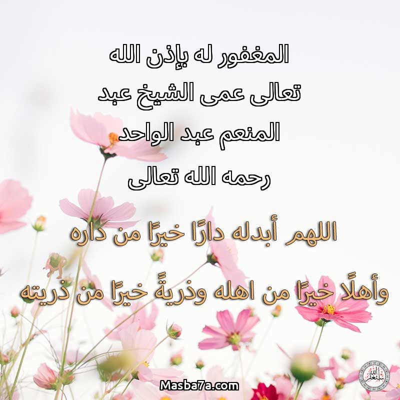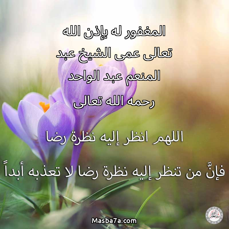 اللهم ارحم ( المغفور له بإذن الله تعالى عمى الشيخ عبد المنعم عبد الواحد رحمه الله تعالى ) وانس وحشته واجمعنا به في جنتك ، اللهم ارحمه بقدر شوقنا له اللهم ارحمه واغفر له .
