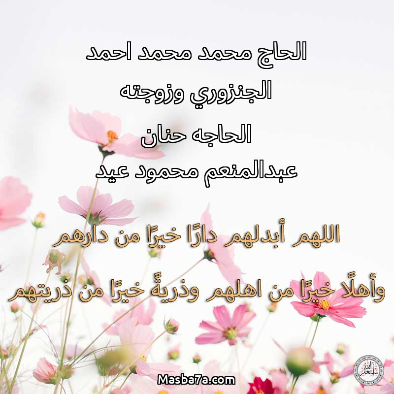 دعاء عن أرواح المرحومين الحاج محمد محمد احمد الجنزوري وزوجته الحاجه حنان عبدالمنعم محمود عيد