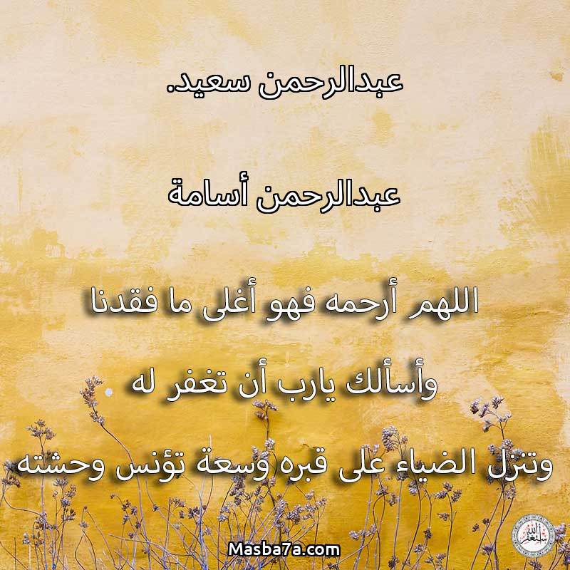 اللهم ارحم ( عبدالرحمن سعيد. عبدالرحمن أسامة ) وانس وحشته واجمعنا به في جنتك ، اللهم ارحمه بقدر شوقنا له اللهم ارحمه واغفر له .
