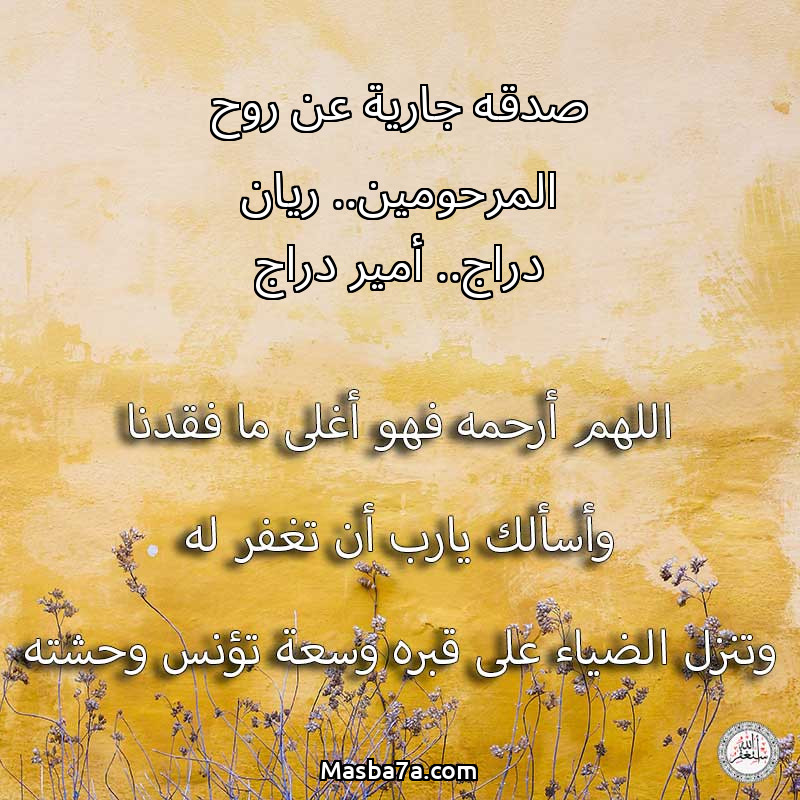 دعاء عن روح المرحوم صدقه جارية عن روح المرحومين.. ريان دراج.. أمير دراج