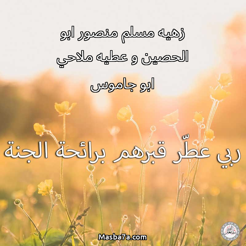 اللهم ارحم ( زهيه مسلم منصور ابو الحصين و عطيه ملاحي ابو جاموس ) وانس وحشتهم واجمعنا بهم في جنتك ، اللهم ارحمهم بقدر شوقنا لهم اللهم ارحمهم واغفر لهم.