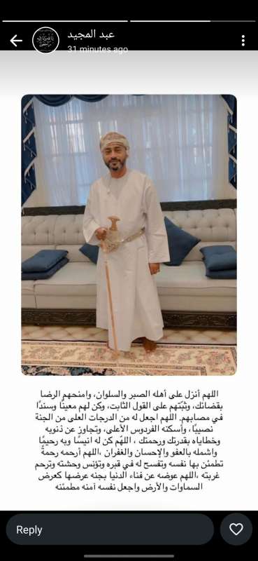 اللهم ارحم ( غريب بن مبارك البوسعيدي ) وانس وحشته واجمعنا به في جنتك ، اللهم ارحمه بقدر شوقنا له اللهم ارحمه واغفر له .