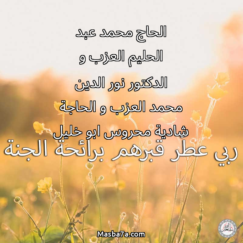 دعاء عن أرواح المرحومين الحاج محمد عبد الحليم العزب و الدكتور نور الدين محمد العزب و الحاجة شادية محروس ابو خليل