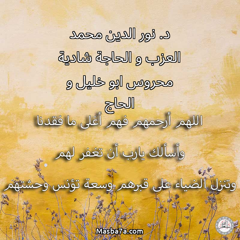 دعاء عن أرواح المرحومين د. نور الدين محمد العزب و الحاجة شادية محروس ابو خليل و الحاج