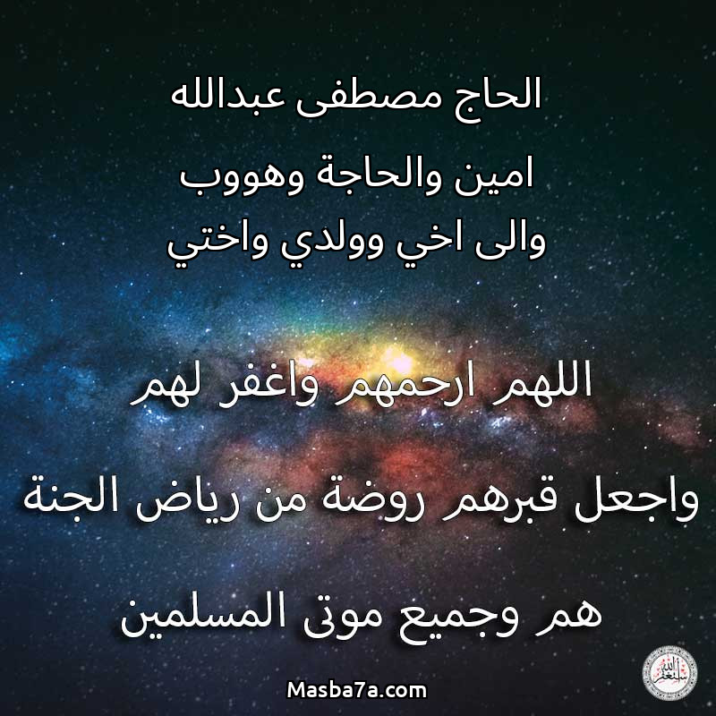 دعاء عن أرواح المرحومين الحاج مصطفى عبدالله امين والحاجة وهووب والى اخي وولدي واختي