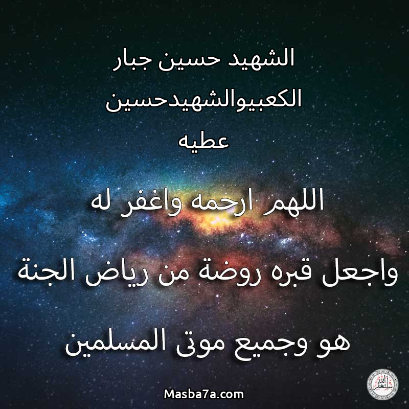 اللهم ارحم ( الشهيد حسين جبار الكعبيوالشهيدحسين عطيه ) وانس وحشته واجمعنا به في جنتك ، اللهم ارحمه بقدر شوقنا له اللهم ارحمه واغفر له .