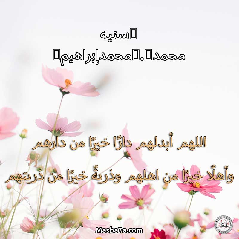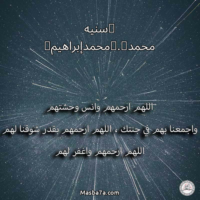اللهم ارحم ( (سنيه محمد).(محمدإبراهيم) ) وانس وحشتهم واجمعنا بهم في جنتك ، اللهم ارحمهم بقدر شوقنا لهم اللهم ارحمهم واغفر لهم.