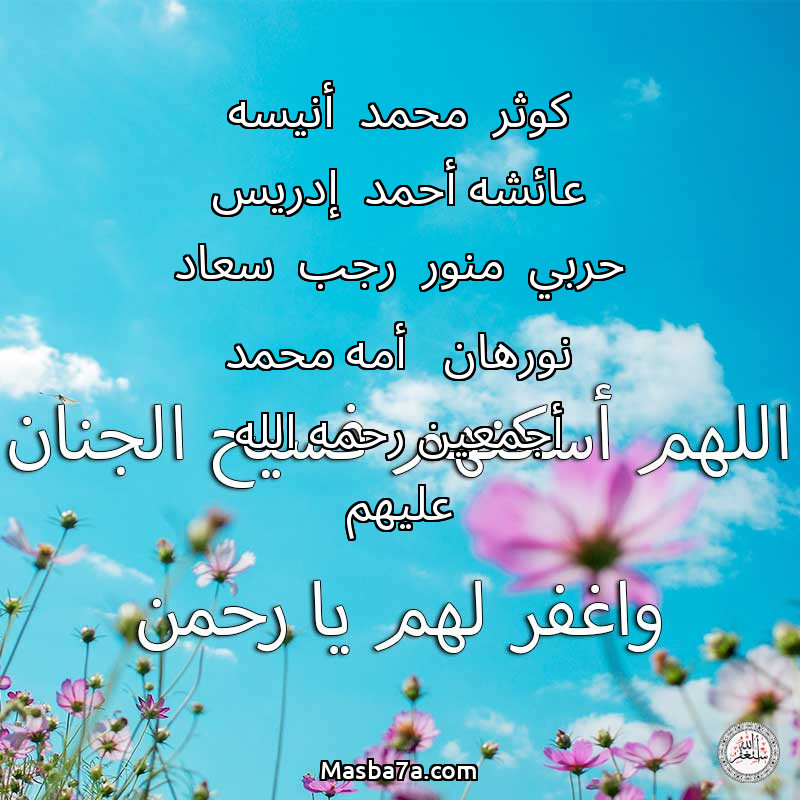 دعاء عن أرواح المرحومين كوثر -محمد -أنيسه -عائشه-أحمد -إدريس- حربي- منور -رجب -سعاد-نورهان - أمه محمد أجمعين رحمه الله عليهم