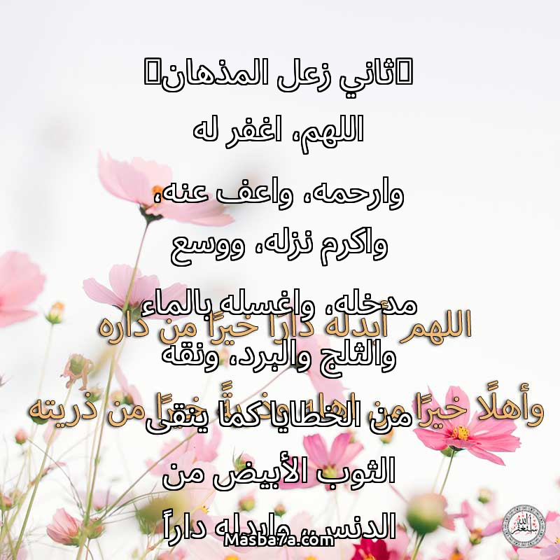 (ثاني زعل المذهان) اللهم، اغفر له وارحمه، واعف عنه، واكرم نزله، ووسع مدخله، واغسله بالماء والثلج والبرد، ونقه من الخطايا كما ينقى الثوب الأبيض من الدنس، وابدله داراً خيراً من داره، واهلاً خيراً من اهله، وقه فتنة القبر وعذاب النار، واجعل قبره روضه من رياض الجنة .. اللهم اعذه من عذاب القبر ومن عذاب النار" .. اللهم ارحمه فوق الارض وتحت الارض ويوم العرض عليك اللهم قه عذاب يوم تبعث عبادك" أسألكم الدعاء له بالرحمة والمغفرة اللهم ارحمه واغفر له