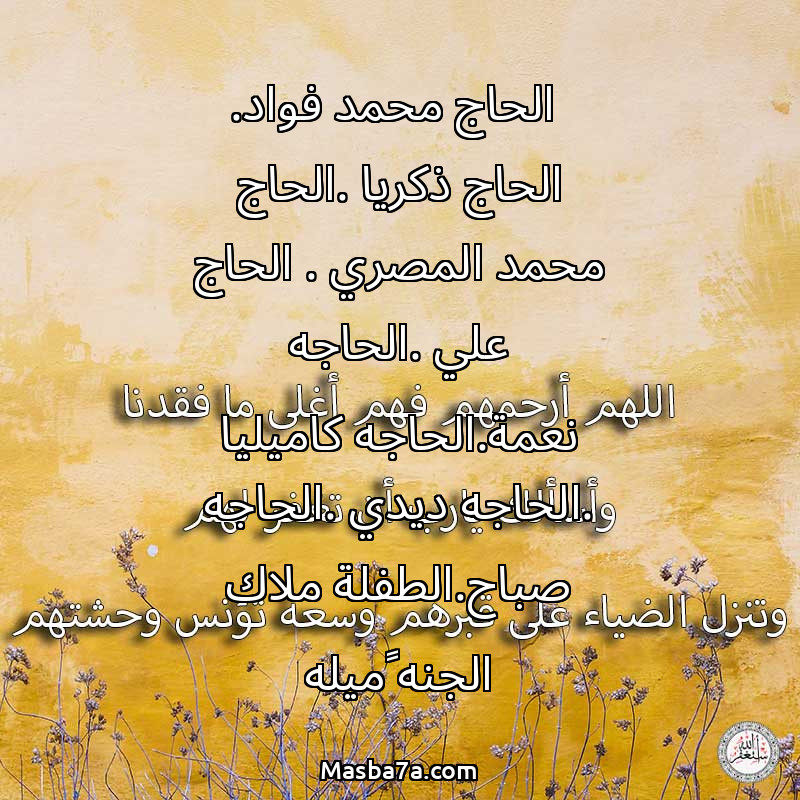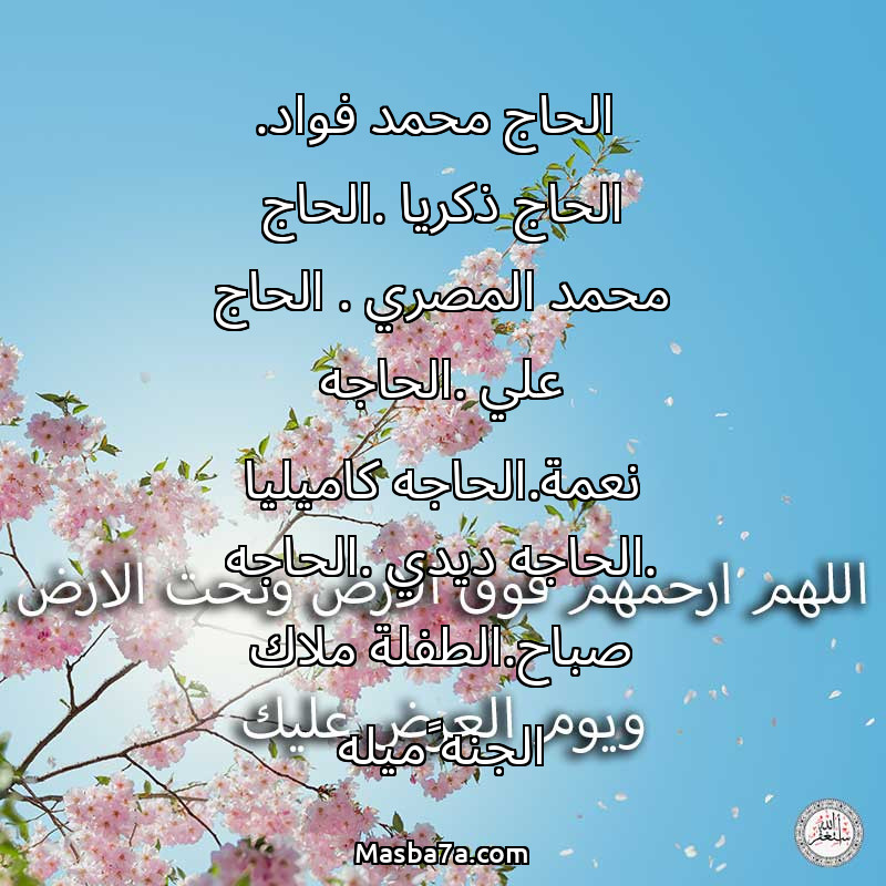 دعاء عن أرواح المرحومين الحاج محمد فواد. الحاج ذكريا .الحاج محمد المصري . الحاج علي .الحاجه نعمة.الحاجه كاميليا .الحاجه ديدي .الحاجه صباح.الطفلة ملاك الجنه چميله