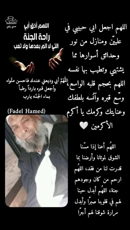 اللهم ارحم ( فضل حامد ) وانس وحشته واجمعنا به في جنتك ، اللهم ارحمه بقدر شوقنا له اللهم ارحمه واغفر له .