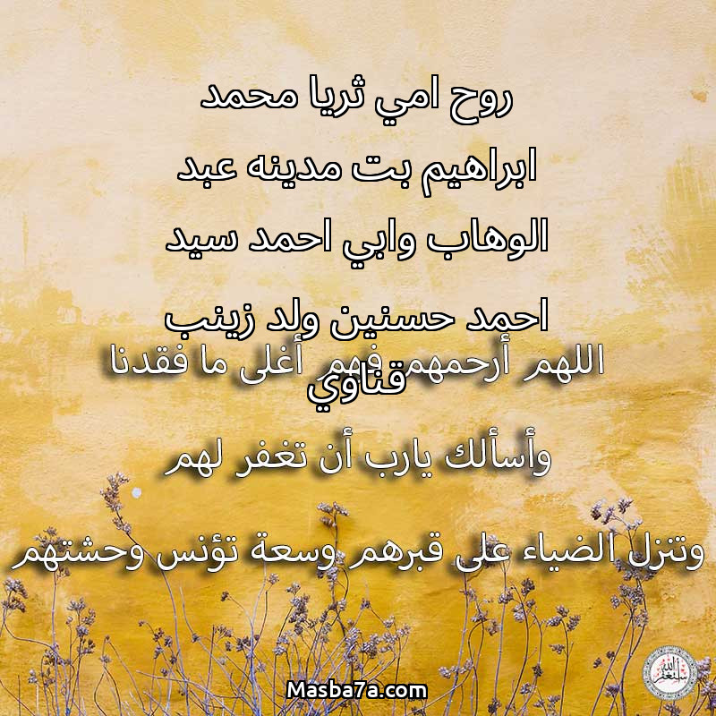 دعاء عن أرواح المرحومين روح امي ثريا محمد ابراهيم بت مدينه عبد الوهاب وابي احمد سيد احمد حسنين ولد زينب قناوي