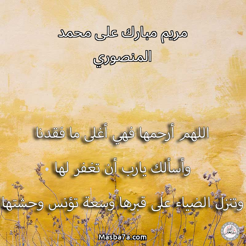 دعاء عن روح المرحومة مريم مبارك على محمد المنصوري