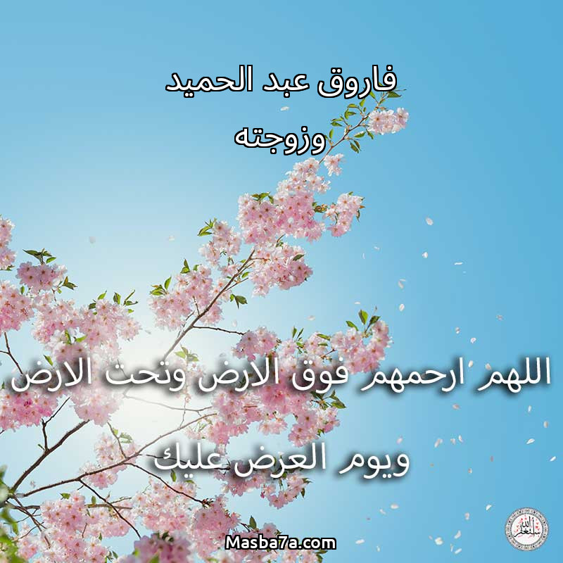 اللهم ارحم ( فاروق عبد الحميد وزوجته ) وانس وحشتهم واجمعنا بهم في جنتك ، اللهم ارحمهم بقدر شوقنا لهم اللهم ارحمهم واغفر لهم.