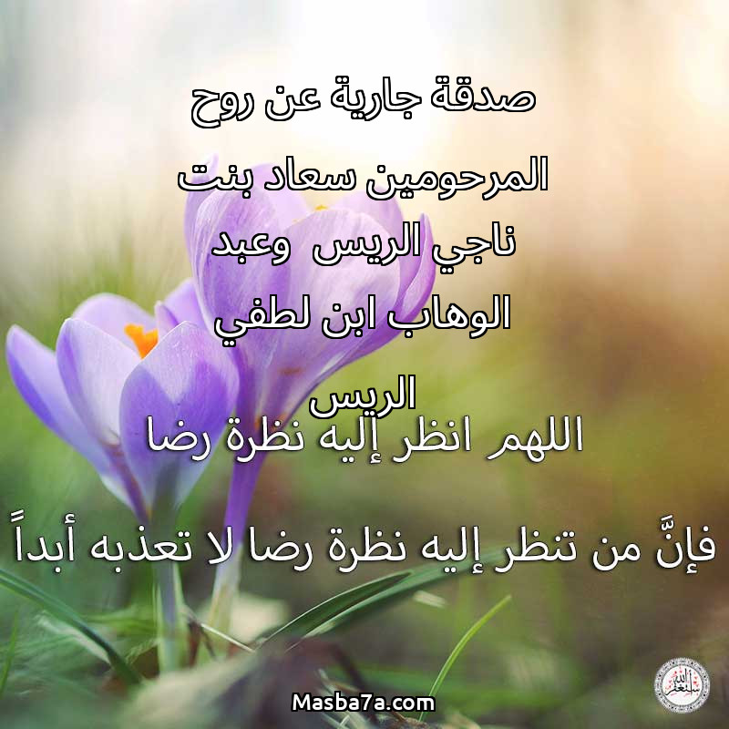دعاء عن روح المرحوم صدقة جارية عن روح المرحومين سعاد بنت ناجي الريس وعبد الوهاب ابن لطفي الريس