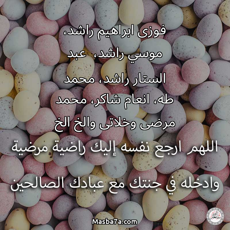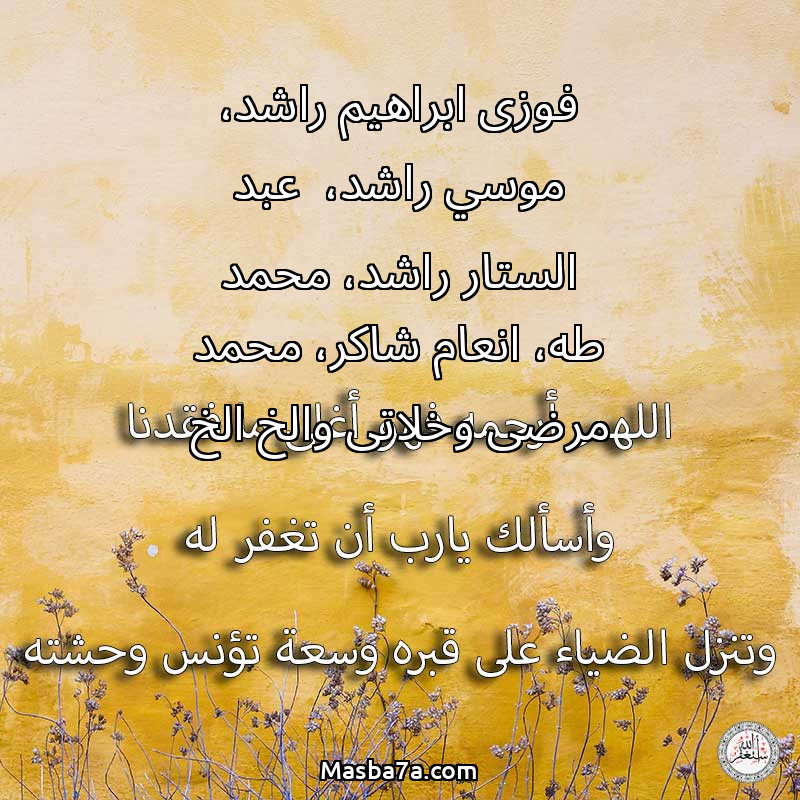 دعاء عن روح المرحوم فوزى ابراهيم راشد، موسي راشد، عبد الستار راشد، محمد طه، انعام شاكر، محمد مرضى وخلاتى والخ الخ