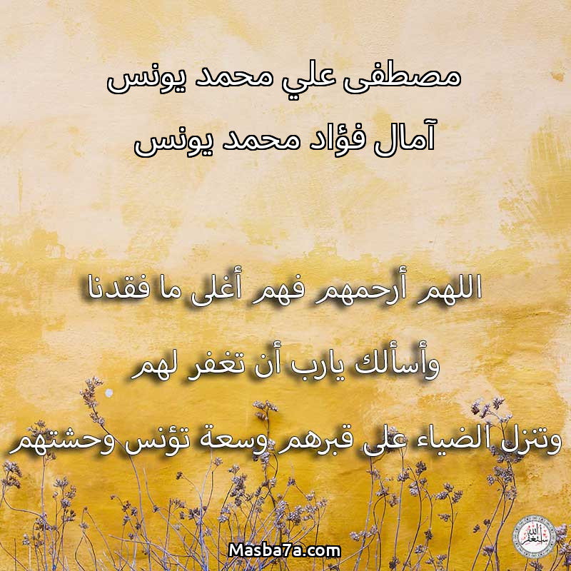 دعاء عن أرواح المرحومين مصطفى علي محمد يونس آمال فؤاد محمد يونس