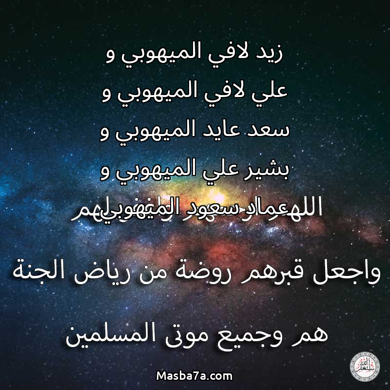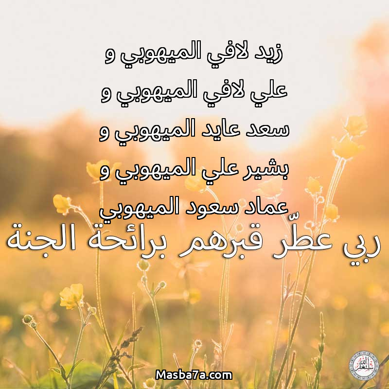 دعاء عن أرواح المرحومين زيد لافي الميهوبي و علي لافي الميهوبي و سعد عايد الميهوبي و بشير علي الميهوبي و عماد سعود الميهوبي