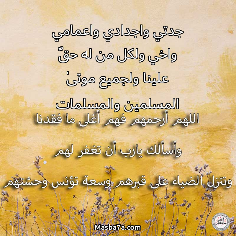 دعاء عن أرواح المرحومين جدتي واجدادي واعمامي واخي ولكل من له حقٌّ علينا ولجميع موتىٰ المسلمين والمسلمات