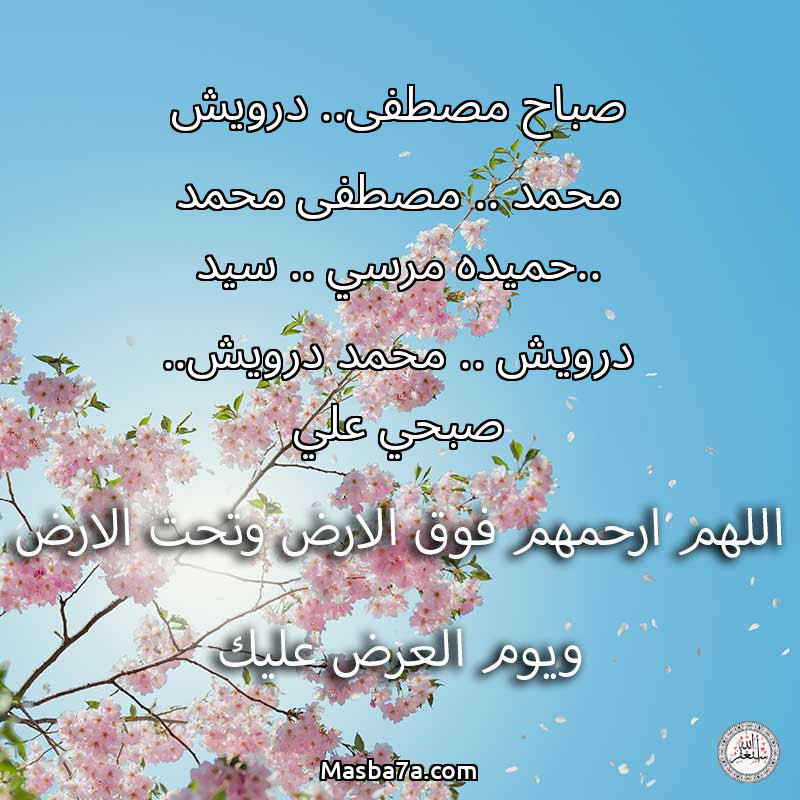 اللهم ارحم ( صباح مصطفى.. درويش محمد .. مصطفى محمد ..حميده مرسي .. سيد درويش .. محمد درويش.. صبحي علي ) وانس وحشتهم واجمعنا بهم في جنتك ، اللهم ارحمهم بقدر شوقنا لهم اللهم ارحمهم واغفر لهم.