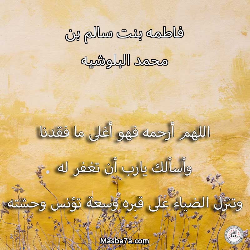 اللهم ارحم ( فاطمه بنت سالم بن محمد البلوشيه ) وانس وحشته واجمعنا به في جنتك ، اللهم ارحمه بقدر شوقنا له اللهم ارحمه واغفر له .