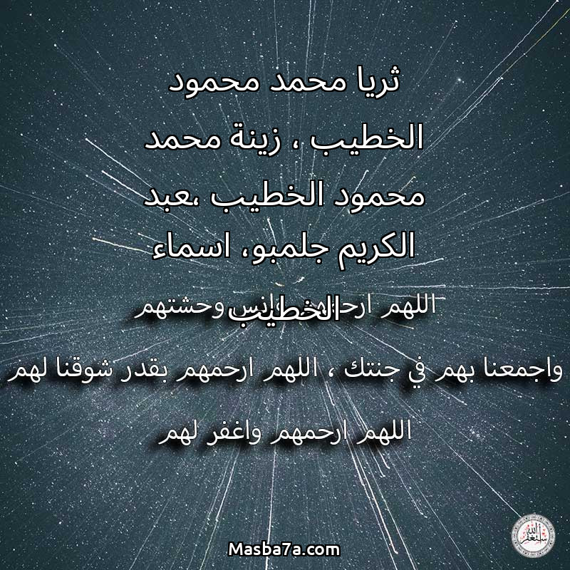 دعاء عن أرواح المرحومين ثريا محمد محمود الخطيب ، زينة محمد محمود الخطيب ،عبد الكريم جلمبو، اسماء الخطيب