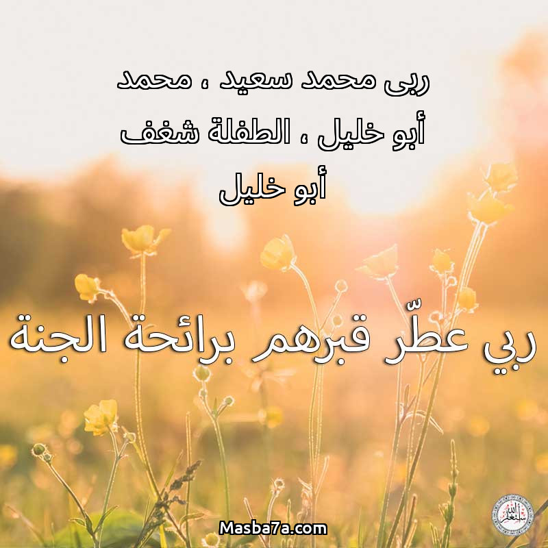 اللهم ارحم ( ربى محمد سعيد ، محمد أبو خليل ، الطفلة شغف أبو خليل ) وانس وحشتهم واجمعنا بهم في جنتك ، اللهم ارحمهم بقدر شوقنا لهم اللهم ارحمهم واغفر لهم.