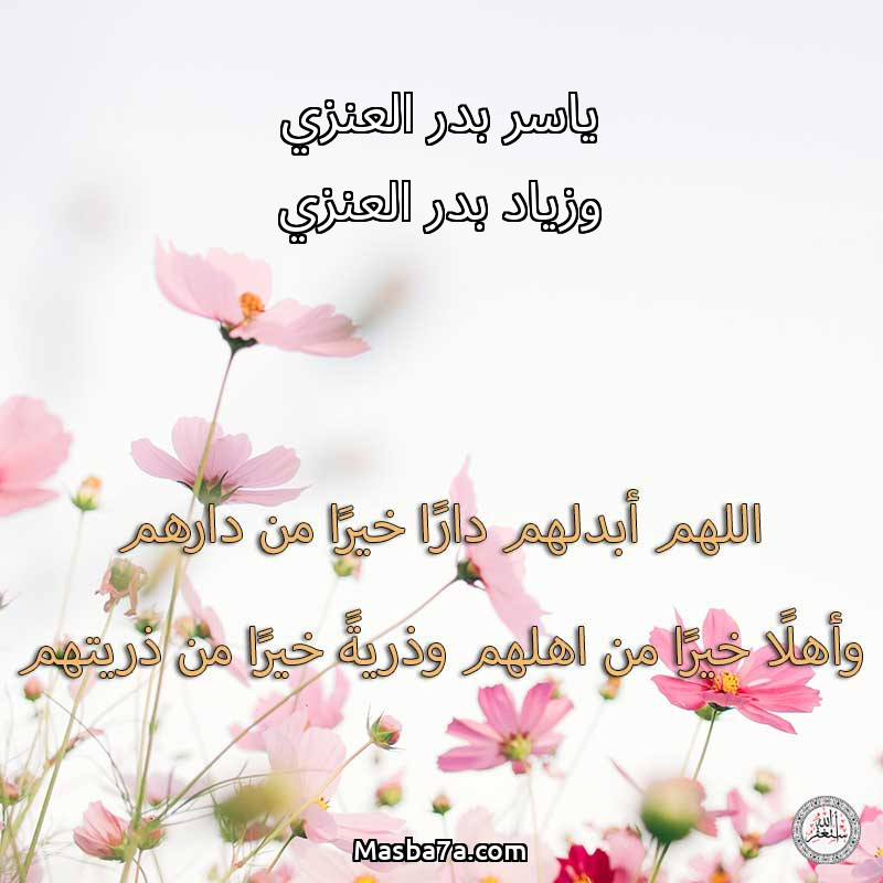 اللهم ارحم ( ياسر بدر العنزي وزياد بدر العنزي ) وانس وحشتهم واجمعنا بهم في جنتك ، اللهم ارحمهم بقدر شوقنا لهم اللهم ارحمهم واغفر لهم.