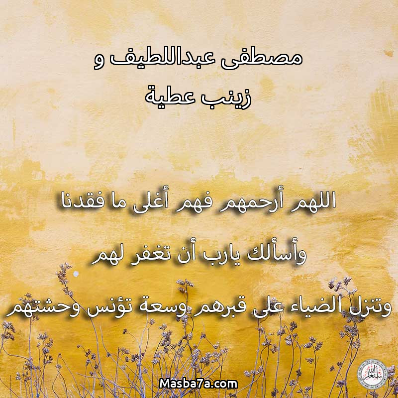 اللهم ارحم ( مصطفى عبداللطيف و زينب عطية ) وانس وحشتهم واجمعنا بهم في جنتك ، اللهم ارحمهم بقدر شوقنا لهم اللهم ارحمهم واغفر لهم.