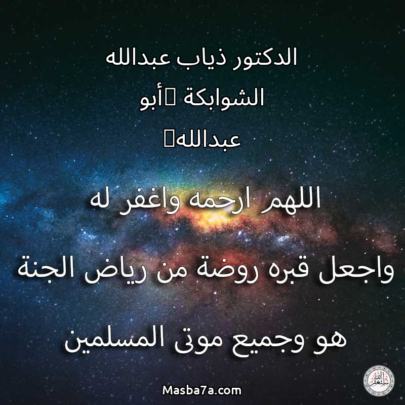 اللهم ارحم ( الدكتور ذياب عبدالله الشوابكة (أبو عبدالله) ) وانس وحشته واجمعنا به في جنتك ، اللهم ارحمه بقدر شوقنا له اللهم ارحمه واغفر له .