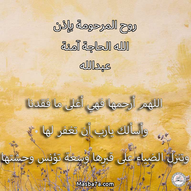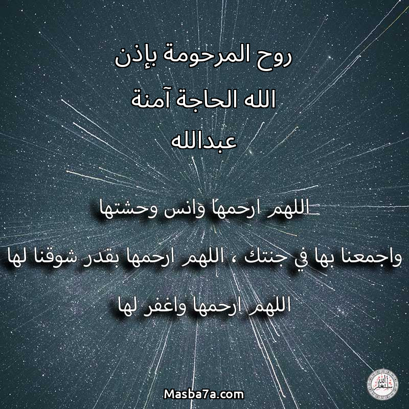 دعاء عن روح المرحومة روح المرحومة بإذن الله الحاجة آمنة عبدالله